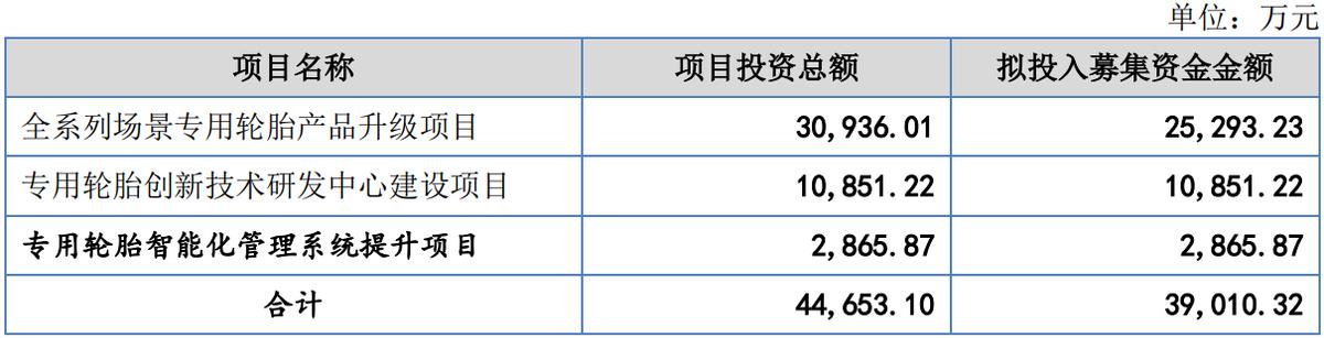 而2025年7月上会前,泰凯英则将募投项目及募资金额进行了调整,保留了“全系列场景专用轮胎产品升级项目”和“专用轮胎创新技术研发中心建设项目”,并新增专用轮胎智能化管理系统提升项目,募资金额缩减3.8亿元至3.9亿元,缩水约50%。
