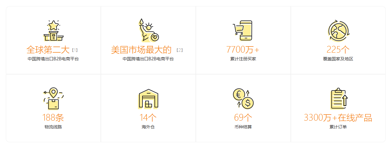 官网显示,敦煌网提供超3300万种在线产品,涵盖电子产品、家居和玩具、鞋服、珠宝、健康和美容等类别。其注册买家超7700万、供应商超250万,覆盖225个国家和地区,拥有14个海外仓和188条物流线路。