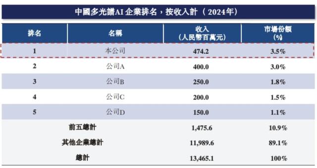 根据弗若斯特沙利文报告显示,按照2024年收入计算,海清智元是中国排行第一的多光谱AI企业,也是最大的多光谱AI大模型服务公司,在多光谱AI模组领域排名全国第三,服务全球超3000家客户。