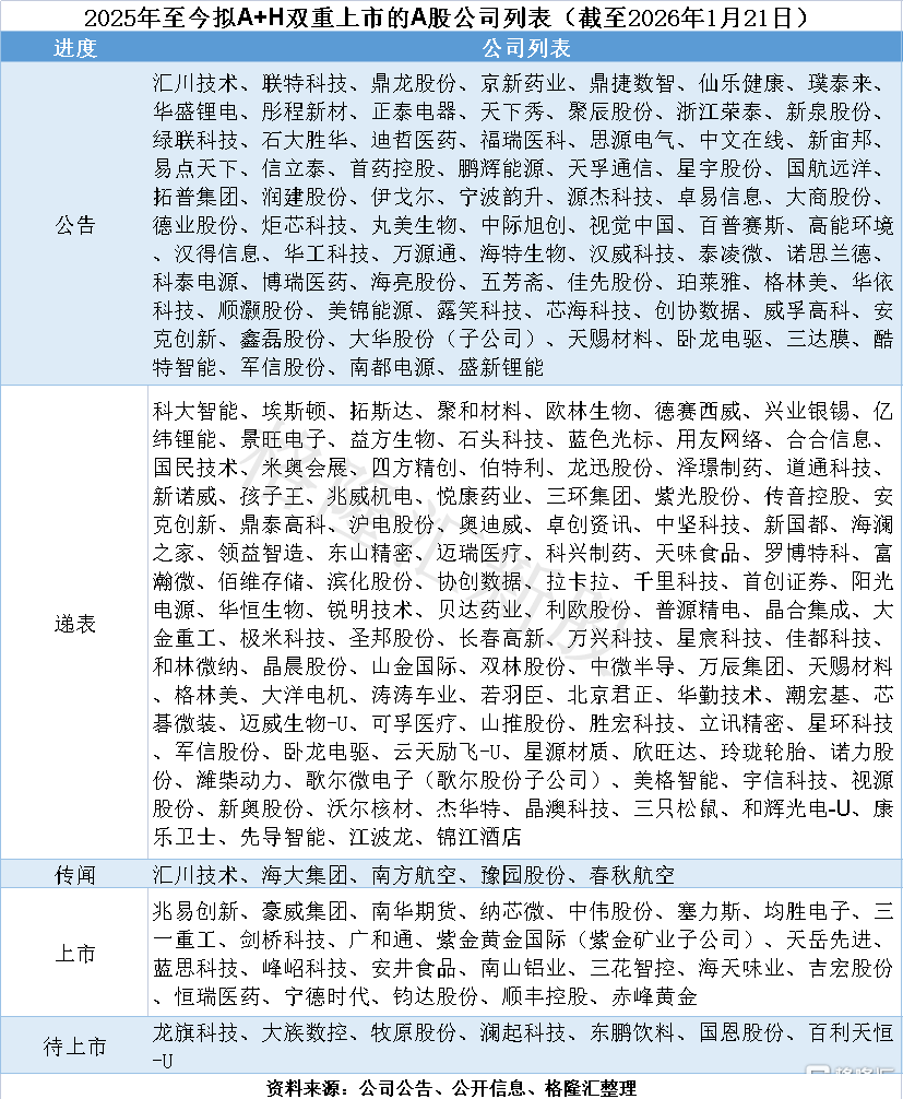 格隆汇获悉,科大智能科技股份有限公司(简称“科大智能”)于1月19日递表港交所,寻求A+H双重上市,由华泰国际、国元国际担任保荐人。(A+H双重上市公司列表见文末)