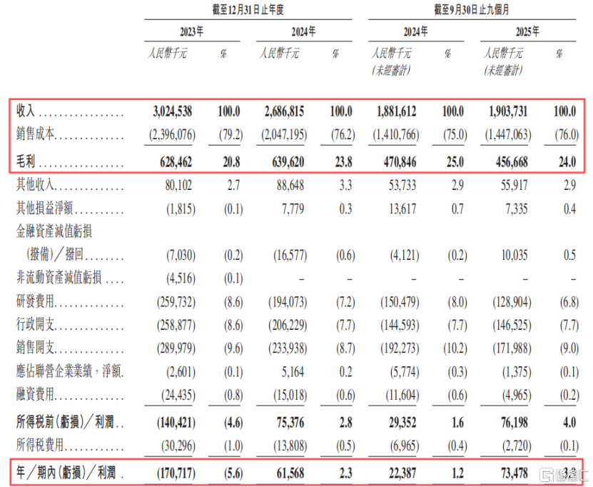 2023年、2024年及2025年1-9月(报告期),公司的收入分别为30.25亿元、26.87亿元、19.04亿元,2024年收入有所下降,主要是因为出售了一部分机器人相关的业务。