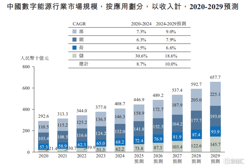 中国数字能源行业市场规模,按应用划分,来源:招股书