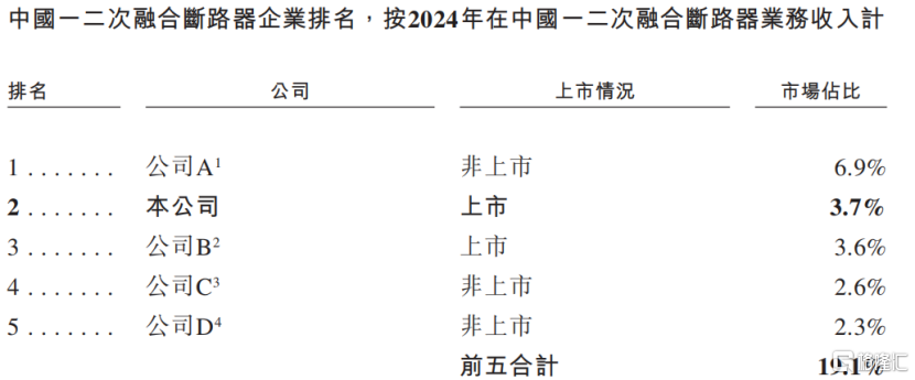 中国一二次融合断路器企业排名,来源:招股书
