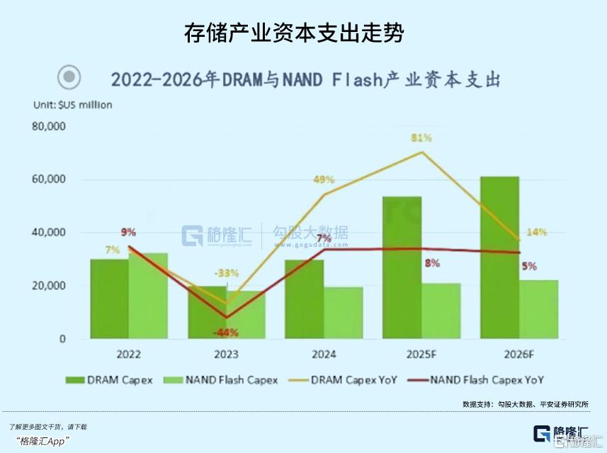 海外市场率先开启“扩产竞赛”,存储大厂资本开支猛增。三星、SK海力士、美光三大存储原厂2025年资本开支同比增幅超80%:三星将DDR4产线升级为DDR5,并加码HBM产线;SK海力士全年资本开支上调至203亿美元,重点布局HBM3E与3D DRAM;美光新加坡工厂则聚焦无电容结构优化,稳步提升产能。