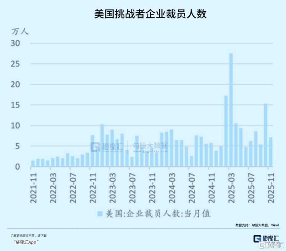 12月4日,根据咨询公司Challenger, Gray & Christmas的报告:截至11月,全美雇主累计裁掉1170821名员工,较去年激增54%。