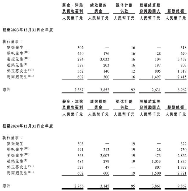 仅就基本薪资而言,马雨彪、姜振2025年上半年的薪酬也出现了明显的增长。