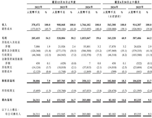 2022年、2023年和2024年度以及2025年上半年,伯希和的净利润分别约为2431.1万元、1.52亿元、2.83亿元和8523.5万元,经调整净利润分别约为2760.6万元、1.56亿元、3.04亿元和1.11亿元。