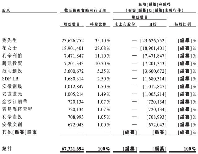 本次上市前,腾讯投资对伯希和的持股比例为10.70%,启明创投持股5.35%。相比之下,刘振、花敬玲夫妇合计持股约63.17%,员工激励平台利辛利伯持股11.10%。其中,刘振为伯希和执行创始人、董事、董事会主席(即董事长)。