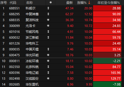 今天绿电、氢能源板块掀起涨停潮,节能风电、中国天楹、华光环能等多股涨停。