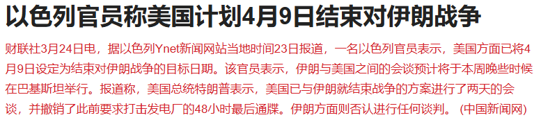 据报道,一名以色列官员表示,美国方面已将4月9日设定为结束对伊朗战争的目标日期。