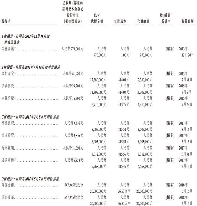 2015年7月,嗨学获得3600万元B轮融资,投资方为中国文化产业投资基金(有限合伙)(「文化基金」)、共青城弘润投资管理合伙企业(有限合伙)(「弘润投资」)、永赢资产管理有限公司(「永赢资产」),员工持股平台卓奥资产亦参与了认购。