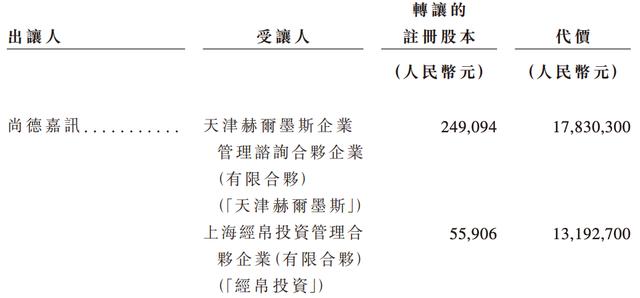 2017年1月,尚德嘉讯进一步向天津赫尔墨斯、经帛投资所持嗨学的股权,分别作价约1783万元、1319万元。同时,为方便管理,梁热、霍艳华、吕敏、崔浩波、李志、杨矿卿、王丽媛等将所持股权整合至新设立的持股平台帕尔巴特、马卡鲁、马纳斯鲁。
