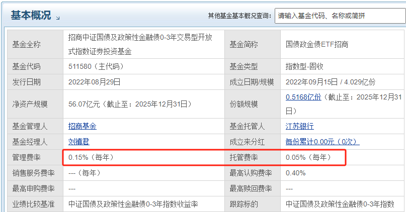 另外,511580还有一个特别适合这种场景的特点——它是T+0交易。节后开市,如果你看中哪个股票机会,随时可以卖出,资金秒到账,完全不耽误你布局。而且它的费率也低,管理费0.15%、托管费0.05%,都是市场最低档,省下来的都是实打实的利润。