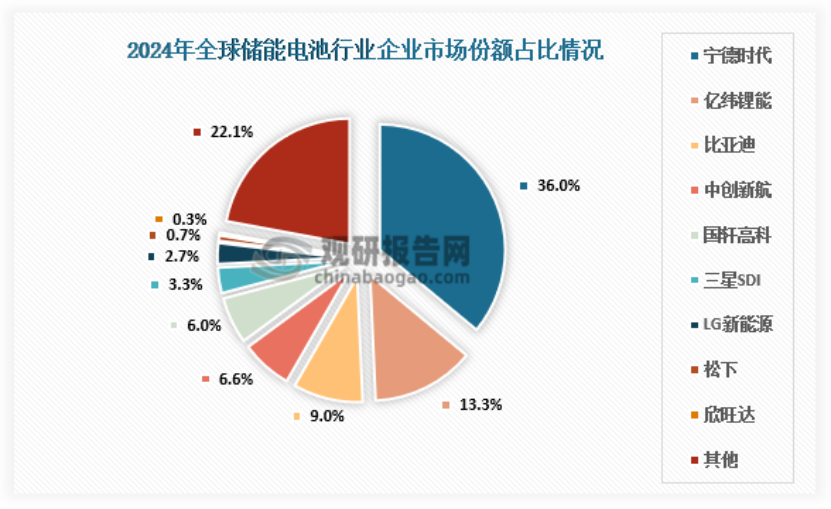 根据华安证券数据,2024年,宁德时代储能电池出货量占全球储能电池出货量36.3%,出货量同比+49%,稳居出货量榜首。其次是亿纬锂能出货40GWh,同比增长90%;中创新航储能电池同比+150%;国轩高科储能电池出货同比+200%。