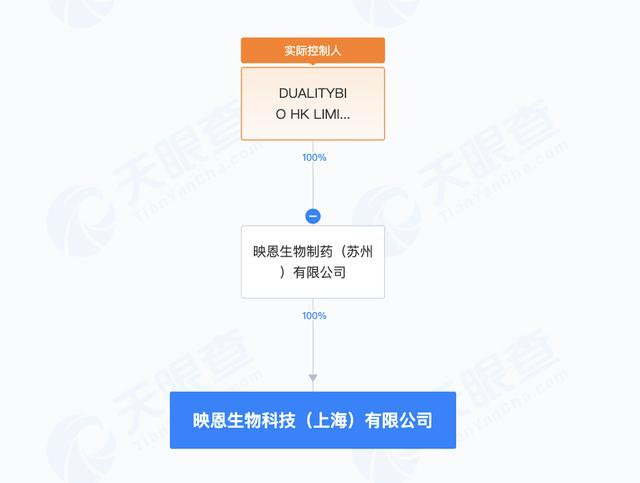 目前,映恩生物的注册资本为8000万美元,法定代表人为朱忠远,全资股东为DUALITYBIO HK LIMITED。
