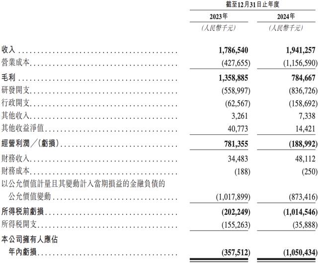 2023年、2024年,映恩生物的收入分别约为17.87亿元、19.41亿元,毛利分别为13.59亿元、7.84亿元,净亏损分别为3.58亿元、10.50亿元。