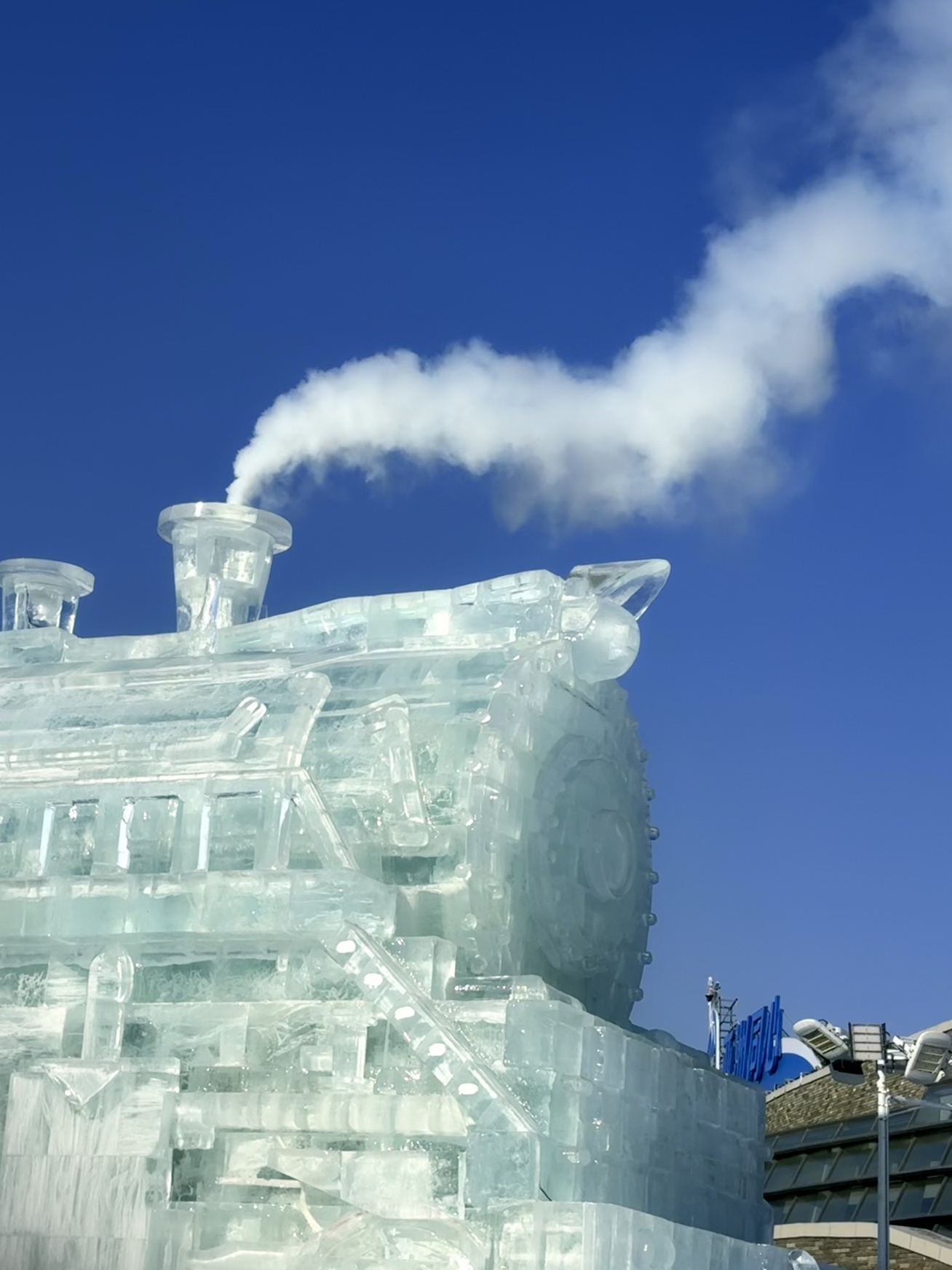 蒸汽火车造型冰雕,受访者供图