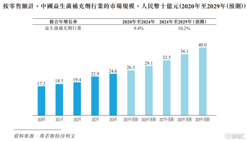 市场规模方面,2024年中国益生菌补充剂的市场规模为246亿元,预计到2029年将增至400亿元,复合年增长率为10.2%。