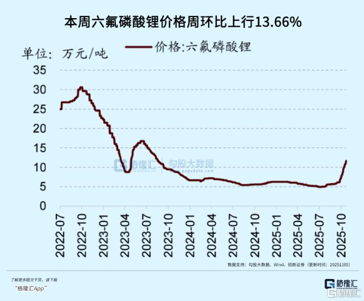 截至11月7日,电解液核心材料——六氟磷酸锂均价已达11.98万元/吨,较9月15日的5.59万元/吨累计上涨114.31%。