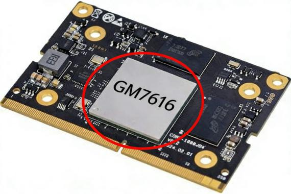 视觉AI SoC(GM7616)集成8核CPU、ISP、NPU及视频编解码器等功能单元,可实现针对视觉信号优化的各种硬件加速,包括降噪、色彩校正、动态范围优化等图像增强功能在内的预处理任务,生成高质量的图像,借助ISP和NPU的计算能力,能够在低光照、强运动等复杂场景下实现目标识别、视觉感知与交互等复杂的智能功能。