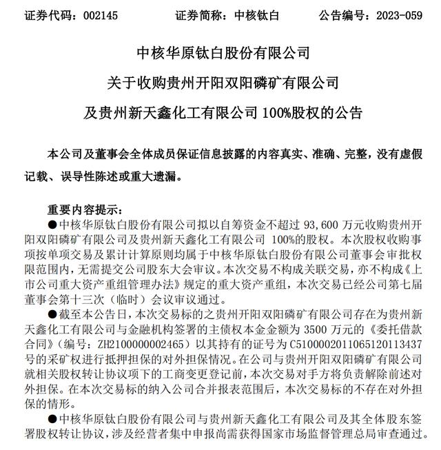 而最后,矿业的资本影响力很强,谁有矿谁就有定价权。近两年,磷矿并购案里最具戏剧性的,是中核钛白(即钛能化学)的一次“半路截胡”。