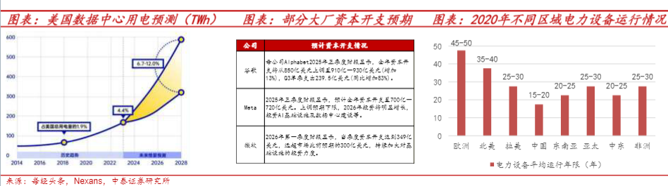这一缺口的背后,是AI数据中心对电力的饥渴需求。根据IEA预测,2024至2030年全球数据中心用电量将从约4150亿千瓦时增长至9450亿千瓦时,复合增速约15%。AI超大规模数据中心容量可达100兆瓦或更高,年耗电量相当于十万户家庭用电规模。美国电网的老化与体制分散进一步加剧电力缺口——2024年美国仅建成55.5英里高压输电线路,创2010年以来最低水平。