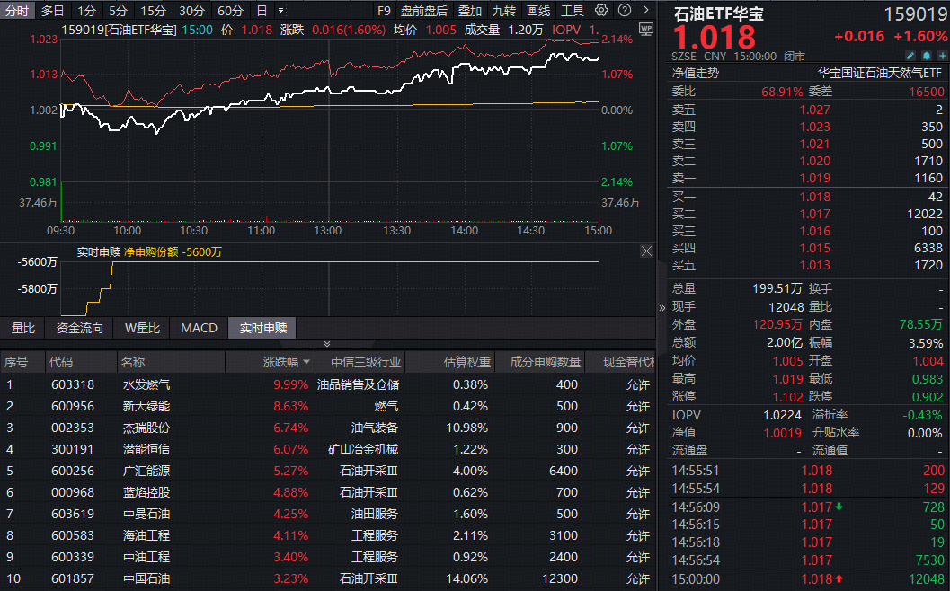 石油石化板块今日逆市大涨,华宝基金石油ETF(159019)迎来上市首秀。一键布局油气全产业链的石油ETF华宝(159019)早盘突然拉升,午后再度冲高,最终场内价格逆市收涨1.6%。