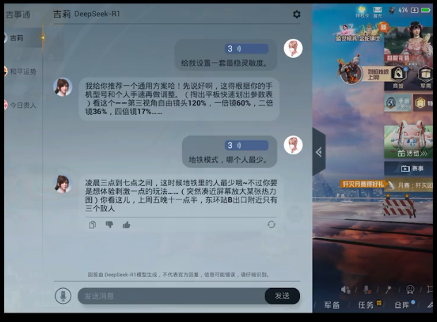 Topic:你在和平精英用DeepSeek了吗?感觉如何?