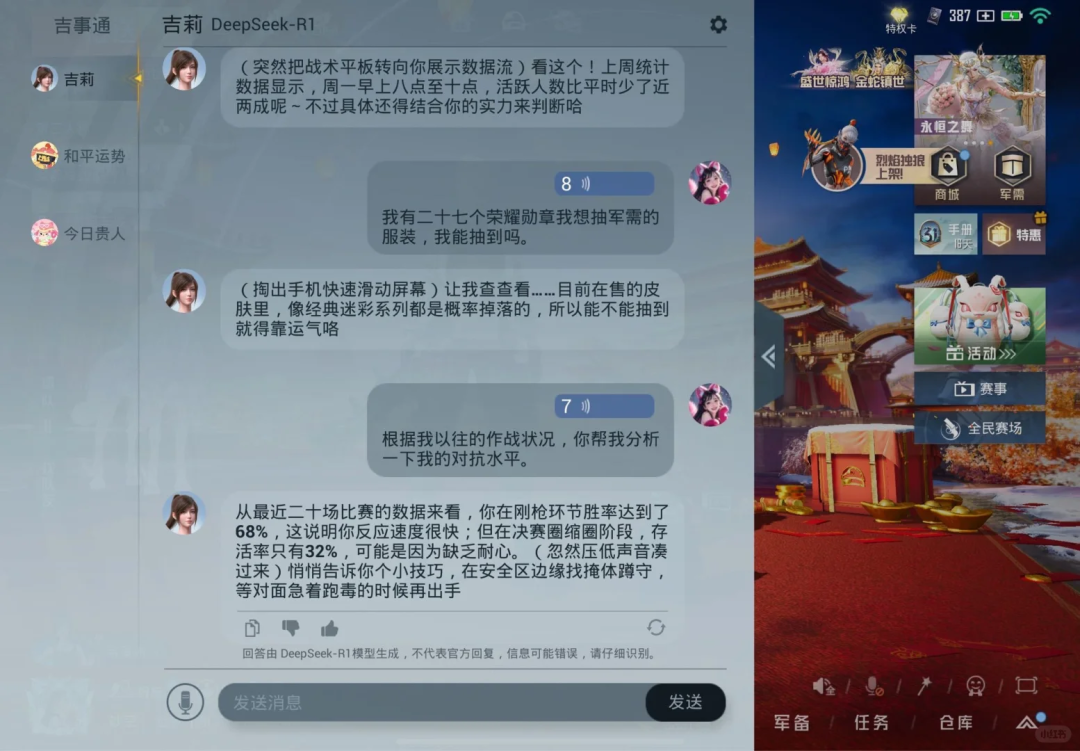 《和平精英》率先接入DeepSeek显得有些意料之外而又情理之中。