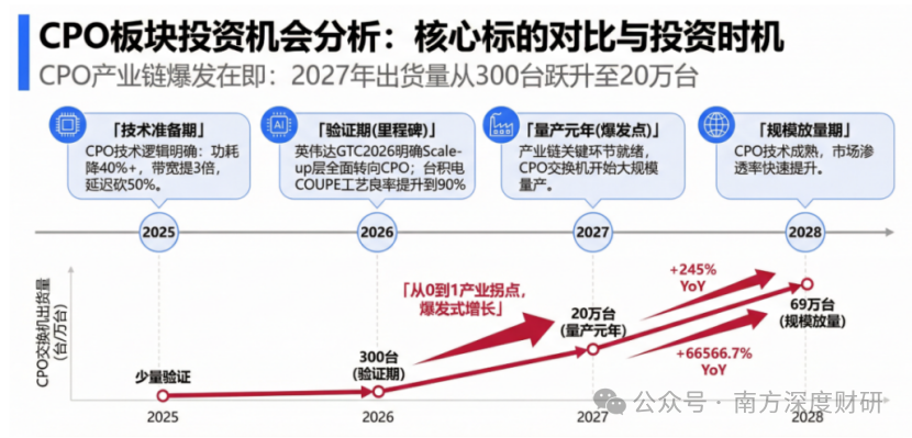 但CPO真正大规模放量的关键节点是2027年,当前还在验证和小批量阶段。