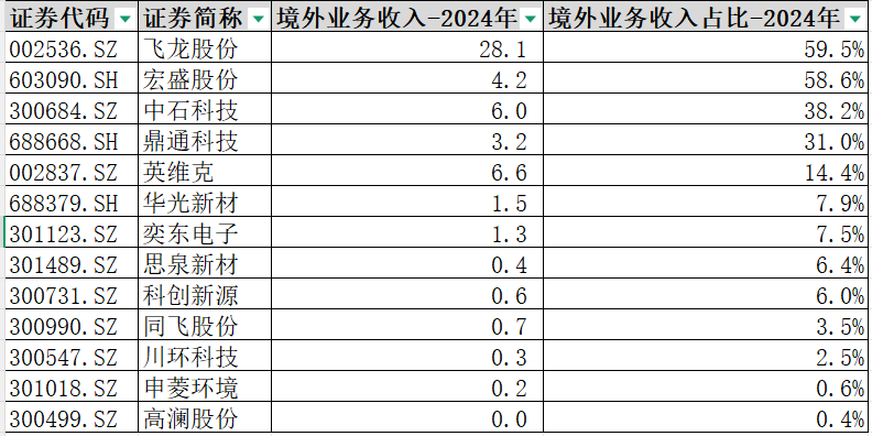 其中,飞龙股份、宏盛股份、中石科技出海收入占比在3成以上,前两家公司达到了5成。