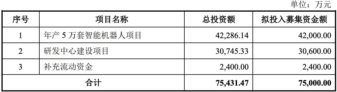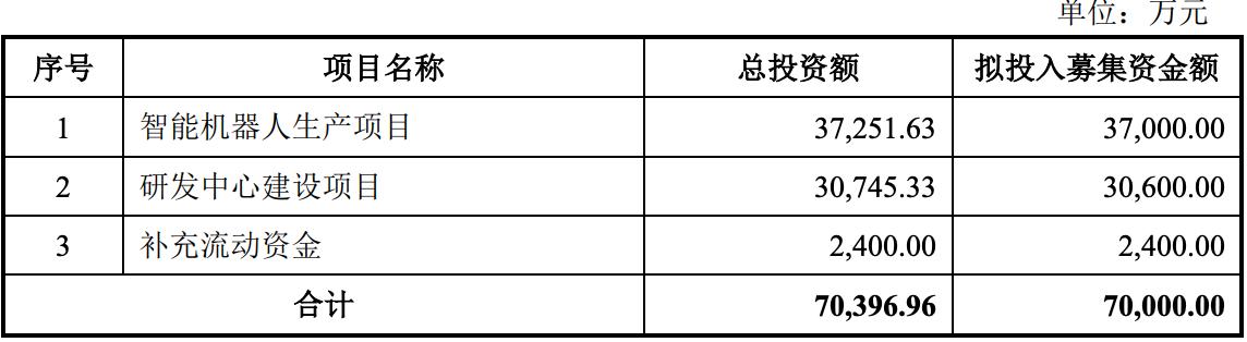 而在2024年12月,节卡机器人更新的招股书则显示,该公司拟募资金额7亿元。其中,原“年产5万套智能机器人项目”修改为“智能机器人生产项目”,拟投资金额由约4.23亿元调整为约3.73亿元。