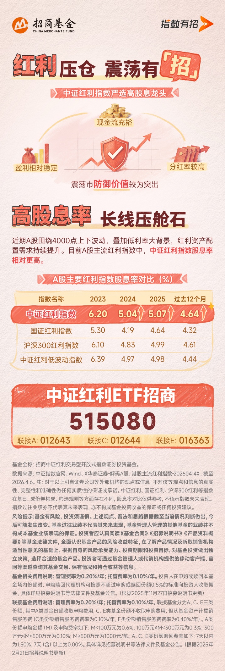 且中证红利ETF招商(515080)自成立以来,累计回报102.18%,相对业绩比较基准超额收益率达71.28%。在低利率环境延续、居民储蓄搬家的大趋势下,红利资产有望持续获得长线资金的青睐。对于希望降低组合波动、获取稳健现金流的投资者而言,该产品或提供了一个能够对抗市场波动的长期配置工具。