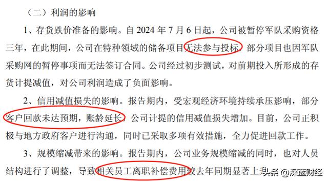 但航天宏图在公告中已经透露了背后原因:一是由于特种领域采购资格被暂停3年,公司对相关存货进行了计提减值;二是对部分长账龄的应收账款计提了减值准备;三是公司进行了“裁员”优化,导致员工离职补偿费用大幅飙升。