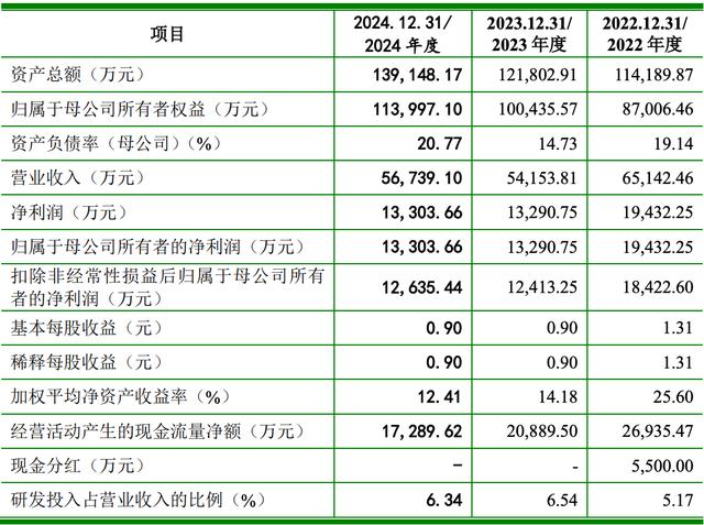 相较此前招股书,鸿星科技更新了2024年的财务数据等信息。2022年、2023年和2024年,该公司的营收分别约为6.51亿元、5.42亿元和5.67亿元,净利润分别约1.94亿元、1.33亿元和1.33亿元,扣非后净利润分别约1.84亿元、1.24亿元和1.26亿元。