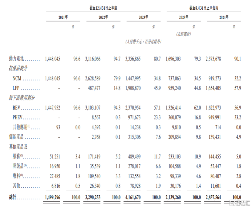 具体来看,2021年、2022年、2023年、2024年1-8月(简称“报告期”),动力电池业务为正力新能贡献了80%以上的收入,占比较大。