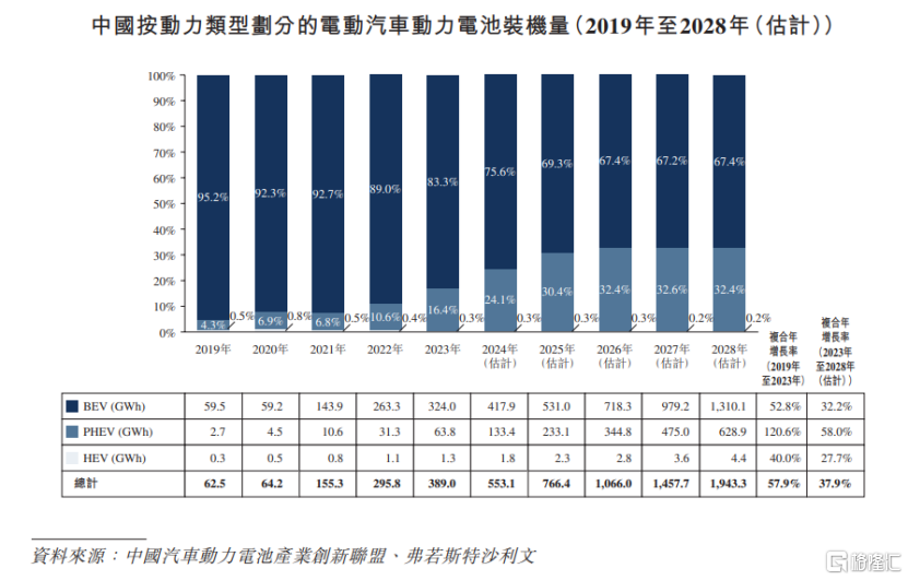 据弗若斯特沙利文及中国汽车工业协会的数据,2023年我国电动汽车销量为1040万辆,预计2028年将达到2850万辆,复合年增长率为22.4%;2023年中国动力电池装机量为389GWh,预计2028年将达到1943.3GWh,复合年增长率为37.9%。