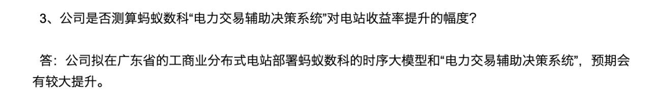 在夯实核心业务基础的同时,能辉科技积极探索“能源场景+数字技术”的跨界融合,以AI技术推动能源管理效率革新。据公司规划,拟于2025年9月,能辉科技将与蚂蚁数科在外滩大会达成战略合作,共同开发“能源AI智能体”应用,从投资、运营、资产退出三大核心环节,重构新能源项目的管理范式。