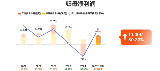 归母净利润为10亿元,同比上涨百分之80.33%。扣非归母净利润为9.66亿元,同比上涨90.53%。