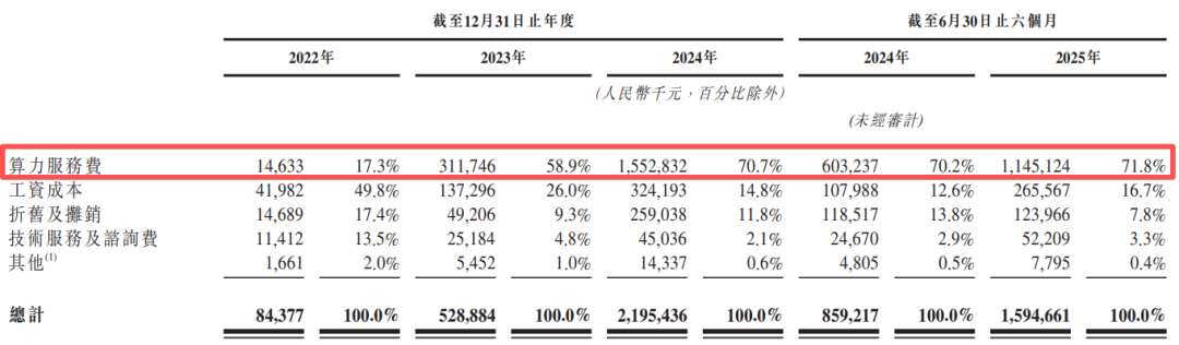 其成本结构中,算力服务费占研发支出的比重在2023年大幅上升,2025年上半年已接近72%。