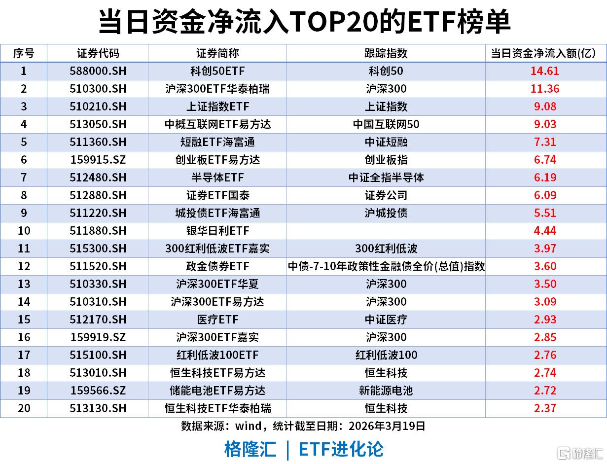 科创50ETF以14.61亿净流入领跑,半导体ETF同步获6.19亿资金加持,科技成长赛道获重点布局。
