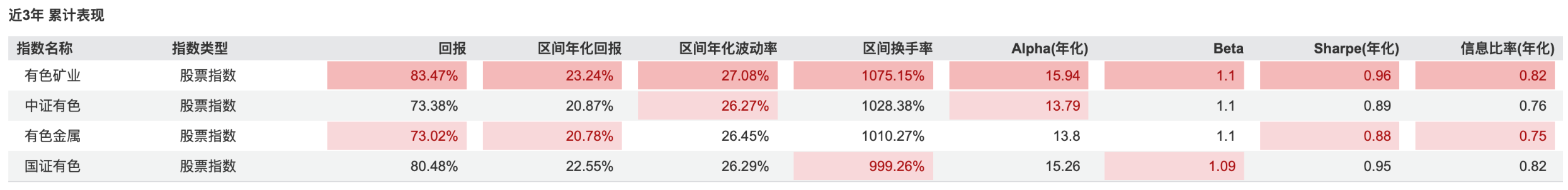 有色矿业ETF(159690)紧密跟踪有色矿业指数,集中于产业链上游的资源开采企业,其盈利与金属价格关联最为紧密。因此,在大宗商品涨价的背景下,指数更为锋利,堪称“有色放大器”。对比同类指数,今年以来,近3年,有色矿业指数区间涨幅及年化涨幅均位居首位。