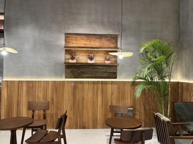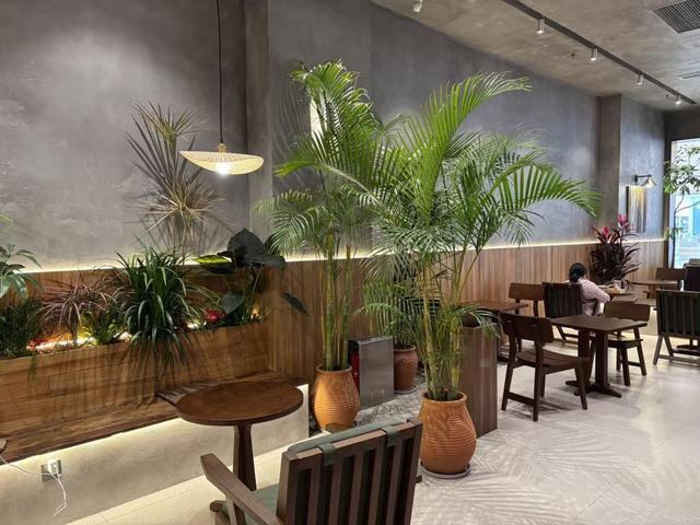 该店面积达156平方米,店内设置了多个座位,相比30平米左右的常规店大了数倍,为员工操作和顾客休息提供了更充裕的空间。店内装修风格以原木风为主,搭配了灰色工业风墙面与绿植,整体呈现出安静和谐的氛围。