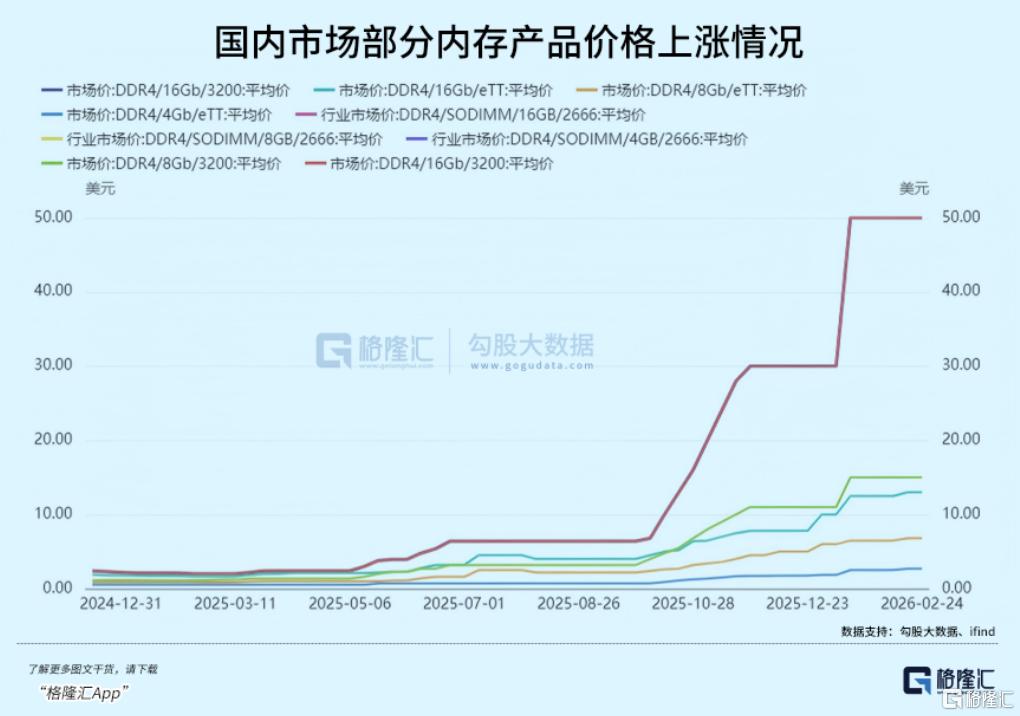 与此同时,PC端的联想、惠普、戴尔等OEM巨头从2025年底开始已发起多轮涨价,涉及产品价格调整幅度在500元至1500元区间。