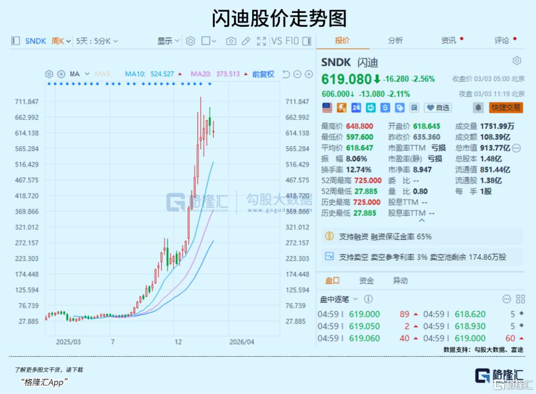 还有2025年2月从西部数据分拆独立后的闪迪,由于彻底聚焦NAND闪存赛道,凭借AI数据中心需求爆发与行业超级涨价周期获得市场资金疯狂追捧,股价近1年来最高累计涨幅甚至超过了22倍!