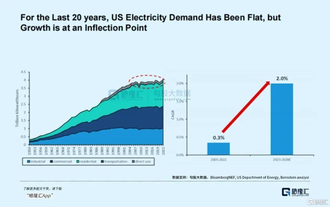新能源的供给规模跟不上AI的增长速度。美国近10年发电总量基本稳定在4100太瓦时,欧洲也只有3120太瓦时,而仅AI数据中心的新增需求就将在未来几年突破千亿太瓦时。