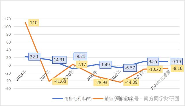 20年-22年毛利率表现不稳定,23年-24年三季报开始转正。