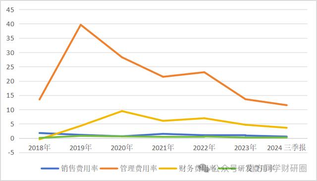 公司期间费用率总体呈下降态势,逐渐体现规模效应。从期间费用明细看,管理费用率中间年份有较大提升,最新已降至2018年水平,主要问题在于财务费用率较高。