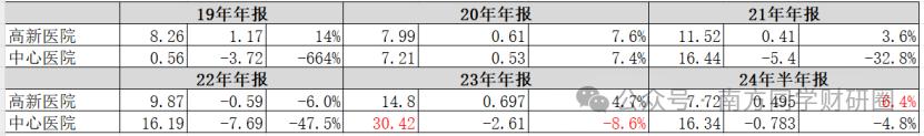 4、经营情况分析:2023年,高新医院和中心医院对公司收入贡献度分别为32%、66%。利润端方面,高新医院一期项目在2015-2019年能保持26%左右的毛利率,14%的净利率;二期项目因疫情、停诊等突发事件,经营不稳定,2023年恢复常态运营后扭亏为盈,2024年净利率有所提升,当前床位满负荷利用,需关注净利率能否恢复到一期水平。中心医院床位利用率虽未达满负荷,但单床产出不输运营多年的高新医院,且近3年处于不断减亏状态。若按现有单床产出77万计算,床位利用率达100%时,能带来66亿左右的营收规模,较2023年收入规模翻倍。