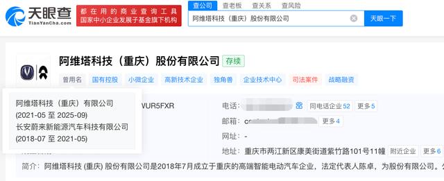 事实上,这个品牌指的就是阿维塔(AVATR),于2025年5月定名。与之对应的是,天眼查APP信息显示,长安蔚来新能源汽车科技有限公司于2021年5月更名为阿维塔科技(重庆)有限公司(即“阿维塔”),直至2025年9月改至为股份有限公司。